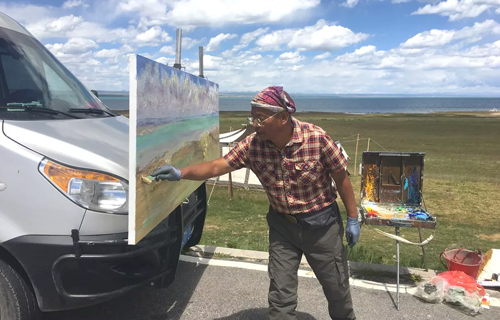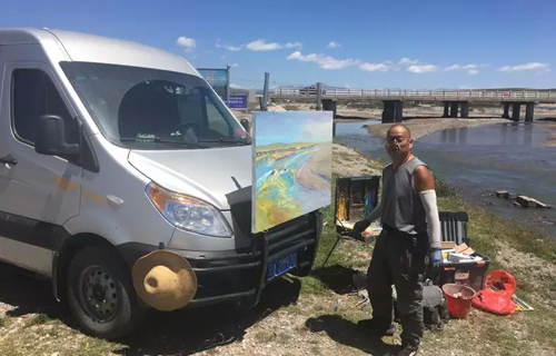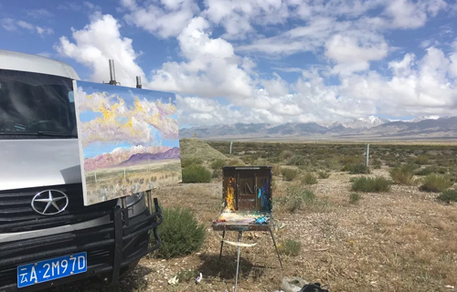 2019年7月16日,期待已久的外出写生的日子如期到来,为了圆满完成假期作业及满足整个写生活动,我把写生车装得满满的,长条的画板、颜料、近一个月时间的生活用品,炊具等等,因为偶尔还需要在车上休息,星锐7个多立方的空间和1米8多的内宽,丝毫没有压力。为了解决户外画板固定问题,我在车前保杠上增加了一个画板支架,沿途遇到美景和灵感划过的时候,停车、架上画板,一个临时画室就完成了,方便快捷。