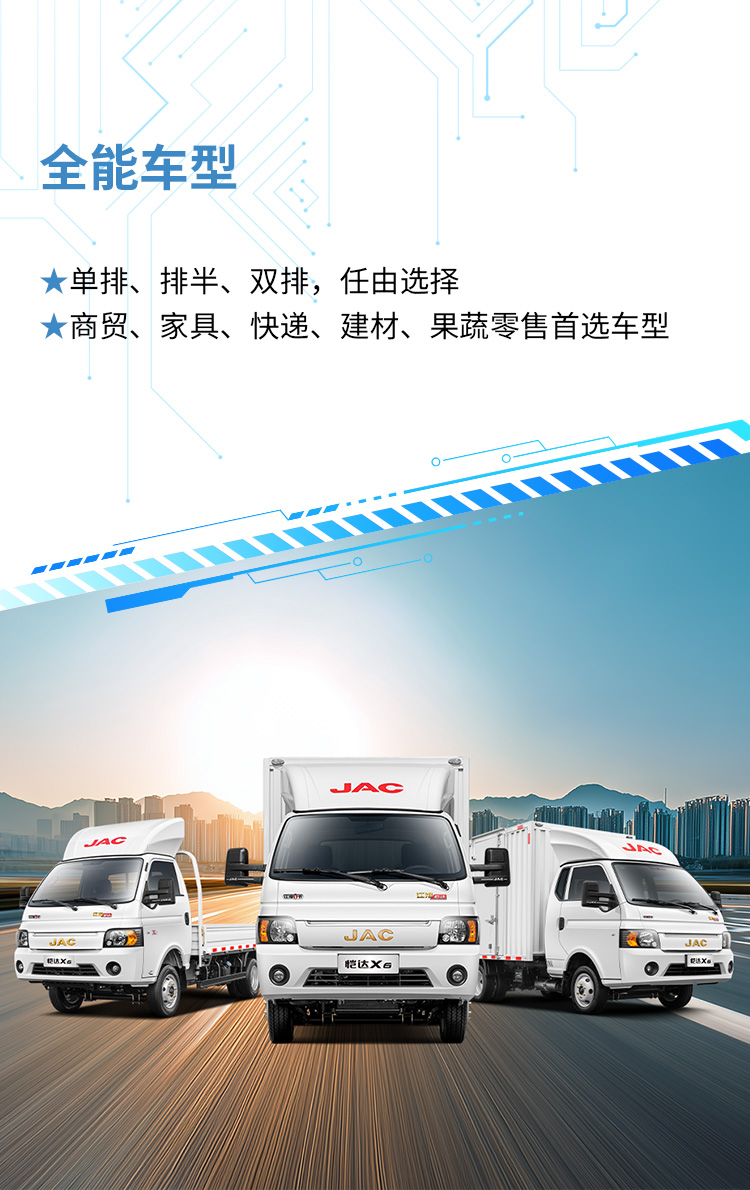 | 标准配置 | MP3收放机、电子助力、中控锁、电动门窗、空调、60L铁油箱、ABS、前盘制动、素色漆、宽后视镜 | MP3收放机、电子助力、中控锁、电动门窗、空调、60L铁油箱、ABS、前盘制动、素色漆、雾灯、宽后视镜 | 手机支架(非MP3/非MP5)、电子助力、中控锁、电动门窗、电动空调、60L铁油箱、ABS、前盘制动、45Ah蓄电池、8.7寸液晶仪表、60w快充 | MP3收放机、电子助力、中控锁、电动门窗、空调、60L铁油箱、ABS、素色漆、雾灯、宽后视镜 | MP3收放机、电子助力转向、宽后视镜、中控锁、电动门窗、空调、60L铁油箱、ABS+EBD、素色漆 | MP3收放机、电子助力转向、宽后视镜、中控锁、电动门窗、空调、60L铁油箱、ABS+EBD、素色漆 | MP3收放机、电子助力、中控锁、电动门窗、空调、65L铁油箱、ABS+EBD、前盘制动、素色漆、宽后视镜、100AH蓄电池、无骨雨刮、车联网、前雾灯 | MP3收放机、动转、中控锁、电动门窗、空调、ABS+EBD、素色漆、前雾灯、车联网、发光字标 | MP3收放机、动转、中控锁、电动门窗、空调、ABS+EBD、素色漆、前雾灯 | MP3收放机、动转、中控锁、电动门窗、空调、ABS+EBD、素色漆、前雾灯、车联网、发光字标 | MP3收放机、动转、中控锁、电动门窗、空调、ABS+EBD、素色漆、前雾灯、宽后视镜、双90L气瓶 | MP3收放机、动转、中控锁、电动门窗、空调、双80L气瓶、ABS、素色漆、前雾灯、宽后视镜 | |