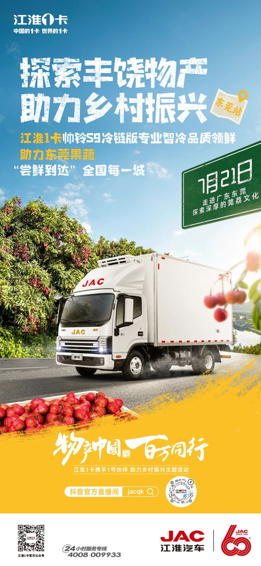 江淮汽车60载,1卡致美好!江淮1卡“物产中国 百万同行”活动旨在联合各地文旅部门、新闻媒体、电商平台、地方企业、高里程用户等多方力量构建乡村振兴沟通桥梁。通过探索全国各省市区地理标志保护产品,以数百万江淮1卡用户的足迹,勾勒出一幅物产中国的丰饶地图。在这份丰饶的地图上,广东东莞传承千年的荔枝文化,犹如一颗璀璨明珠,闪耀华夏。