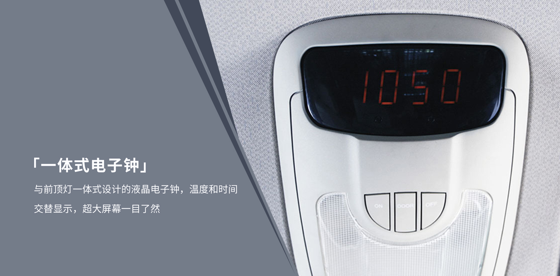| 后顶灯 | — | — | — | ● | ● | ● | ● | ● | 前排阅读灯+电子钟 | — | ||||