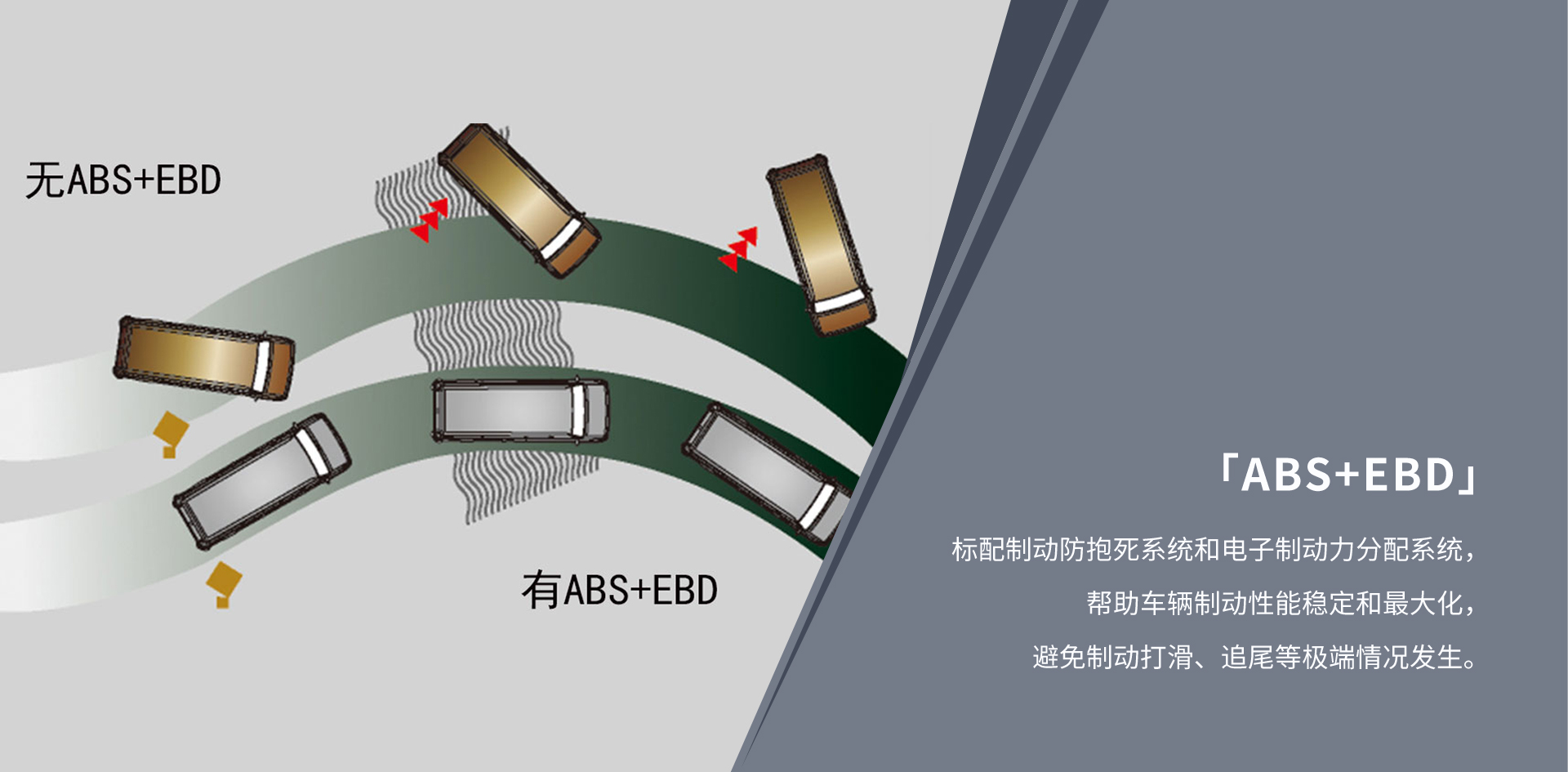 | 胎压监测及报警系统 | — | — | — | — | — | — | — | — | ABS+EBD | ● | ||||